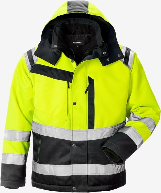 Durable high visibility winter jacket, made of dirt, oil and water-repellent material with soft quilted lining.