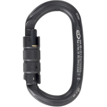 Oval aluminum carabiner with automatic triple-lock closure, max. gate opening of 21 mm