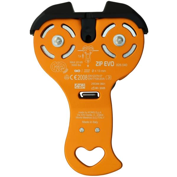 Available ZIP EVO HOOK version, with a hook for hanging connectors, avoiding the wear caused by allowing the connectors to slide along the metal cable (#82605O402KK).